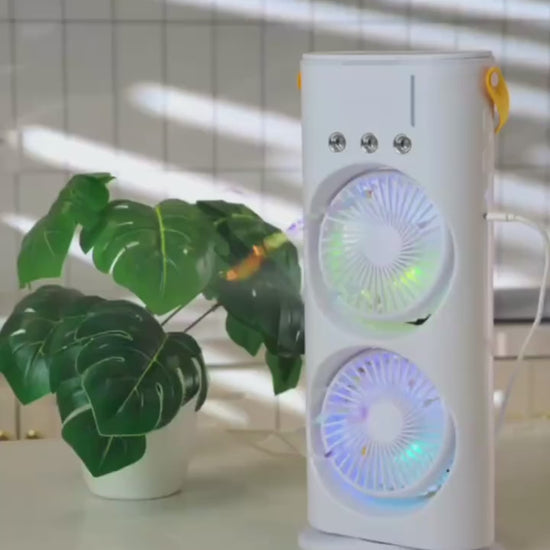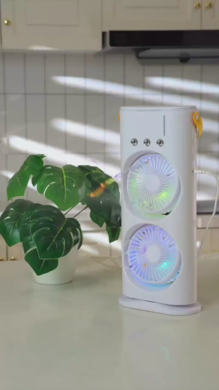 This little cooler is a lifesaver. It is really good at cooling the air. I was not sure if the double fans would make the cooler better. The cooler really pushes out a lot of air. The misting feature, on the cooler is super refreshing when the cooler is used on a hot day. I love that the cooler comes with a control so I do not have to get up to change the speed of the cooler.